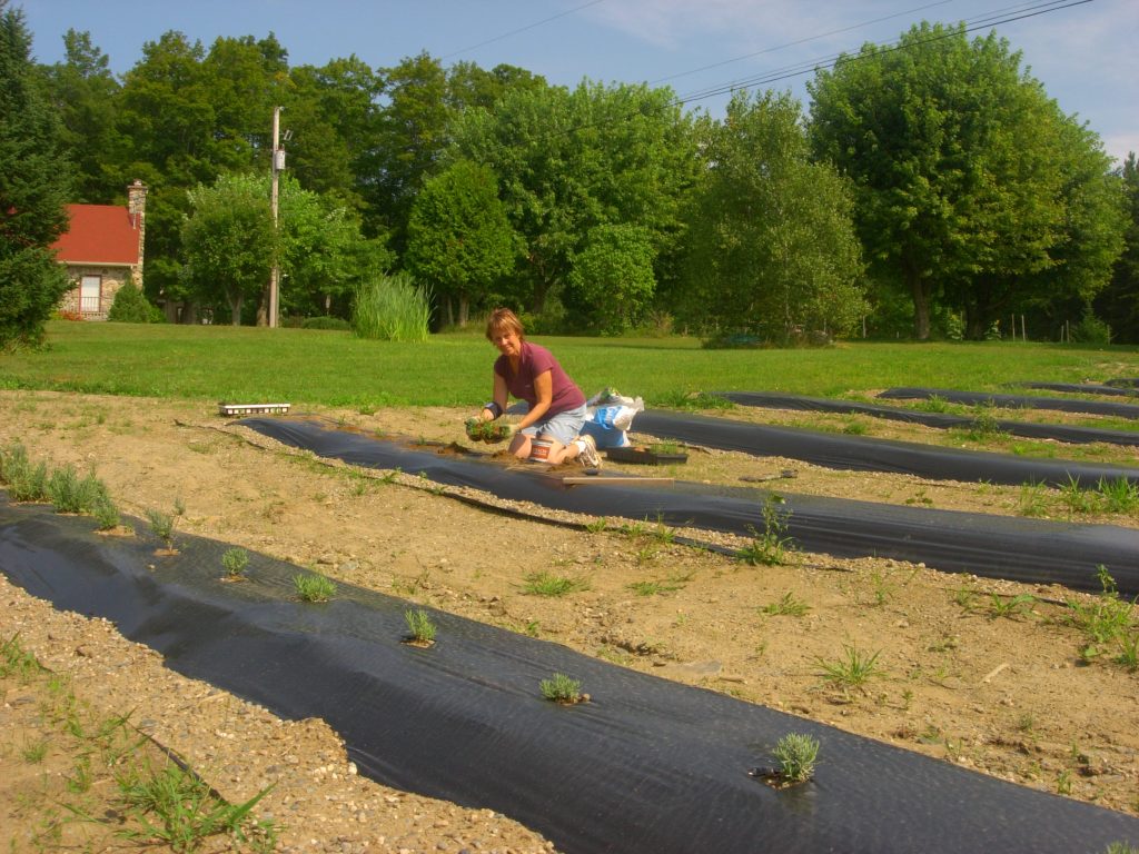 Notre lavanderaie est en place depuis 2013. Nous avons aménagé le terrain avec une dizaine de rangées d’une longueur de 80 pieds. En 2024, nous avons ajouté 5 rangées. La lavande croît dans un sol rocailleux et sec. La production de l’huile essentielle de lavande a débuté en 2017.